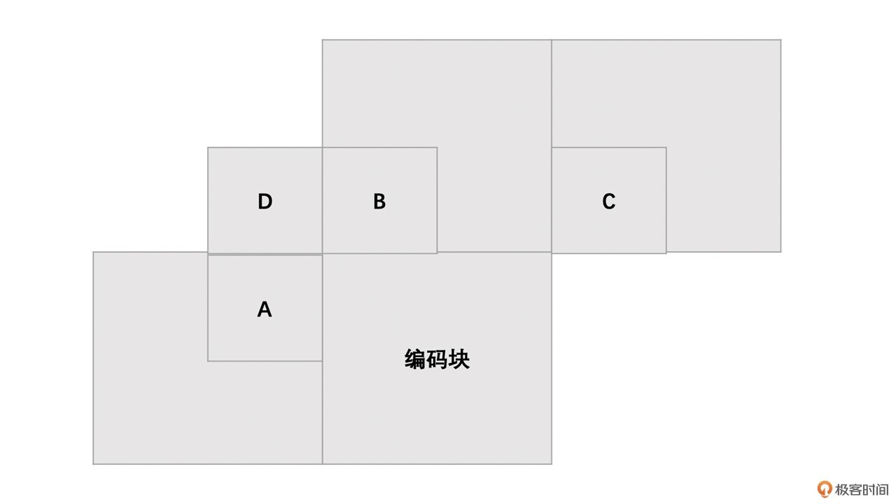 - 取当前编码宏块的左边块A、上边块B、右上块C。如果右上块不存在或者参考帧与当前编码宏块不同(多参考的时候会存在),则使用左上块D替换C,即C = D。