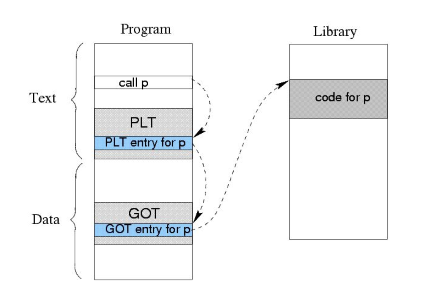 - The Global Offset Table (GOT)。简单来说就是在数据段的地址表,假定我们有一些代码段的指令引用一些地址变量,编译器会引用GOT表来替代直接引用绝对地址,因为绝对地址在编译期是无法知道的,只有重定位后才会得到 ,GOT自己本身将会包含函数引用的绝对地址。