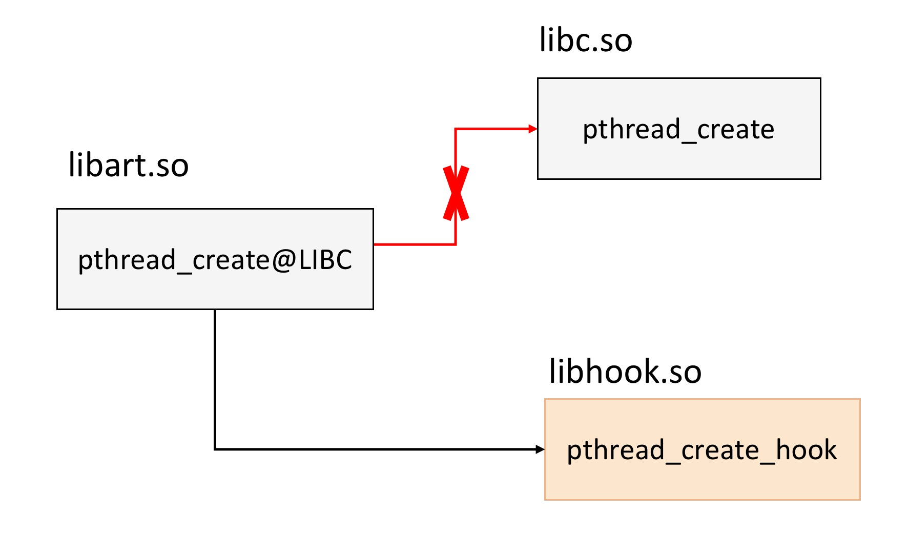 在Chapter06-plus中,我们使用了PLT Hook技术来获取线程创建的堆栈。先来回顾一下它的整个流程,我们将libart.so中的外部函数pthread_create替换成自己的方法pthread_create_hook。