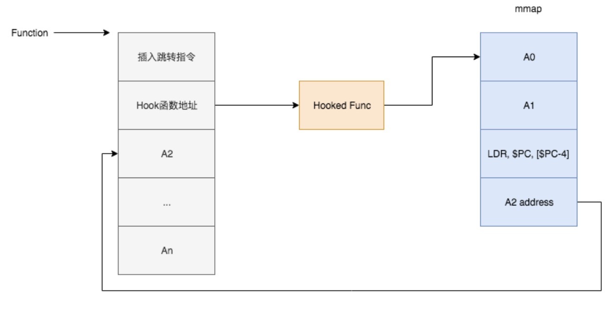 - 在执行完Hook的函数后,我们需要恢复现场。这里如果我们想继续调用原来的函数A,那直接回写函数A的原始指令并恢复寄存器状态。