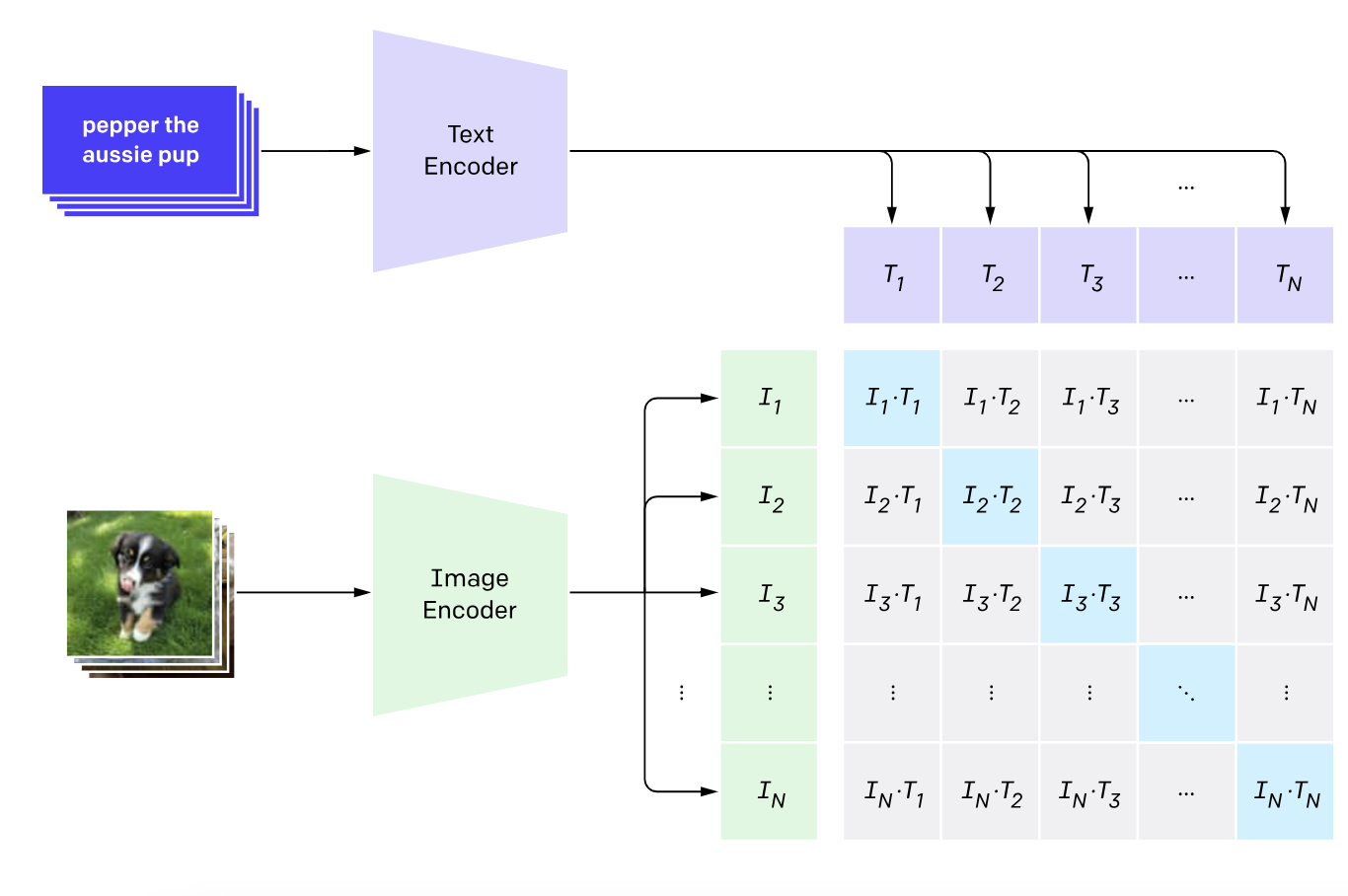 对于CLIP的训练过程,训练目标是对应的图像、文本描述的特征向量的余弦距离越大,让不对应的图像、文本描述之间的余弦距离尽可能小。这个过程必须要用成对的图文数据。