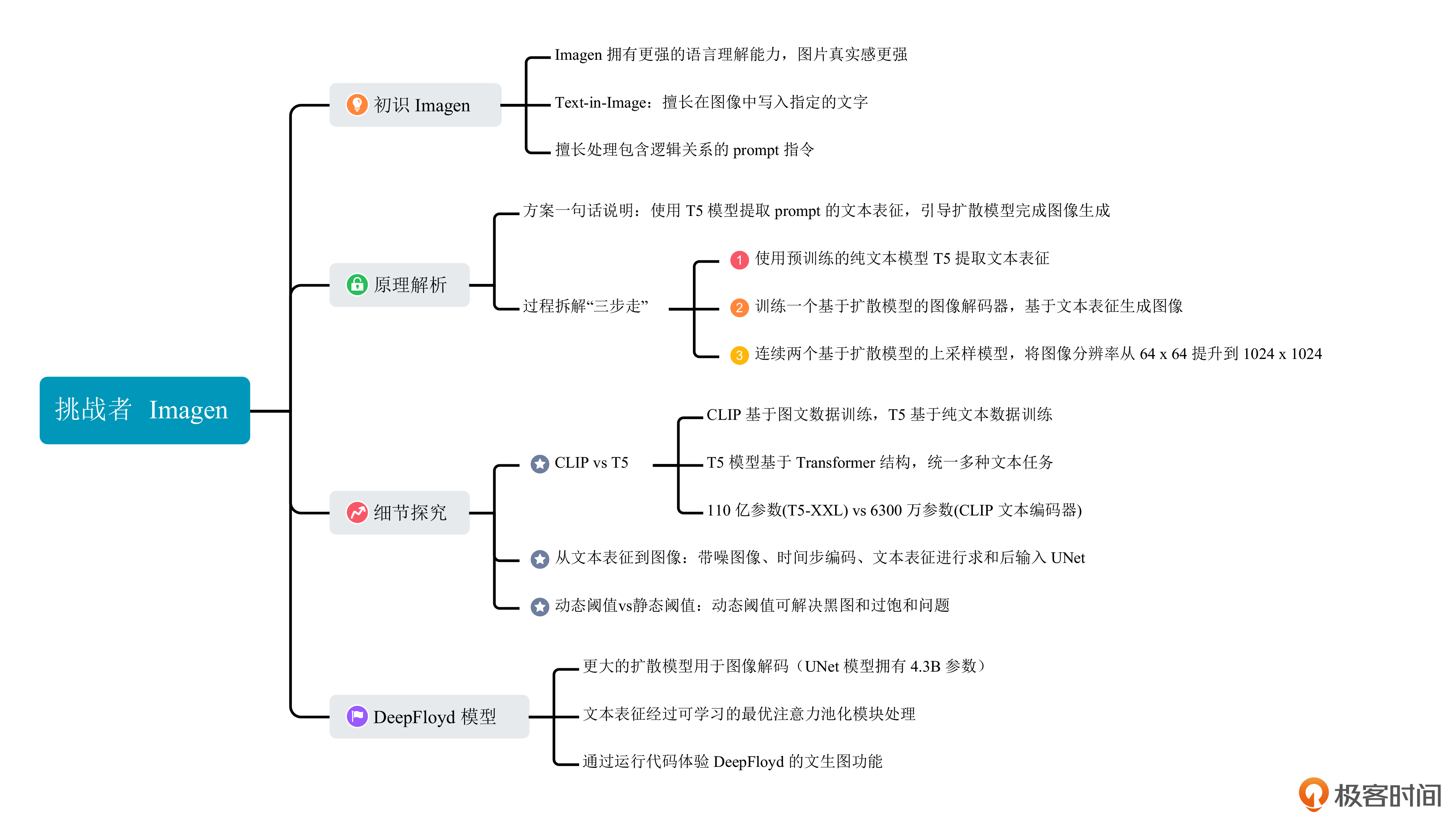 今天这一讲我们来探讨Imagen背后的技术,主要搞清楚以下几个问题。