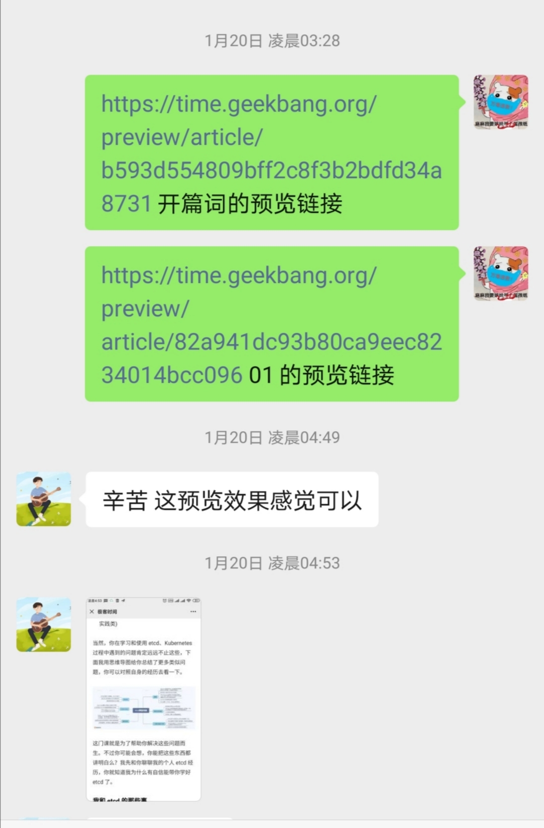 在这里和你分享一件有意思的小事,专栏上线的前一天凌晨,我们和编辑正霖都激动得睡不着,在群里预览文章,聊上线后会是怎么样的一番景象。我们甚至想,会不会上线后被各位疯狂吐槽,以至于不得不录一个“负荆请罪”视频。