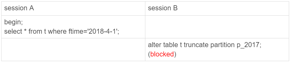 可以看到,虽然session B只需要操作p_2017这个分区,但是由于session A持有整个表t的MDL锁,就导致了session B的alter语句被堵住。