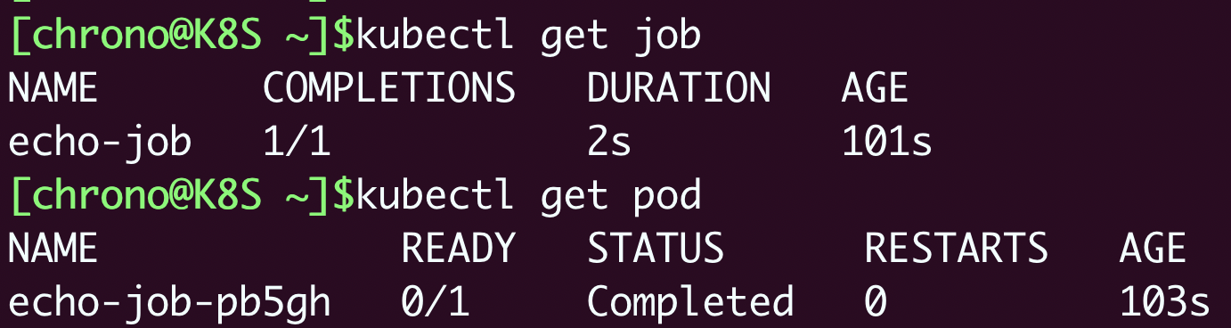 1 | kubectl get job |