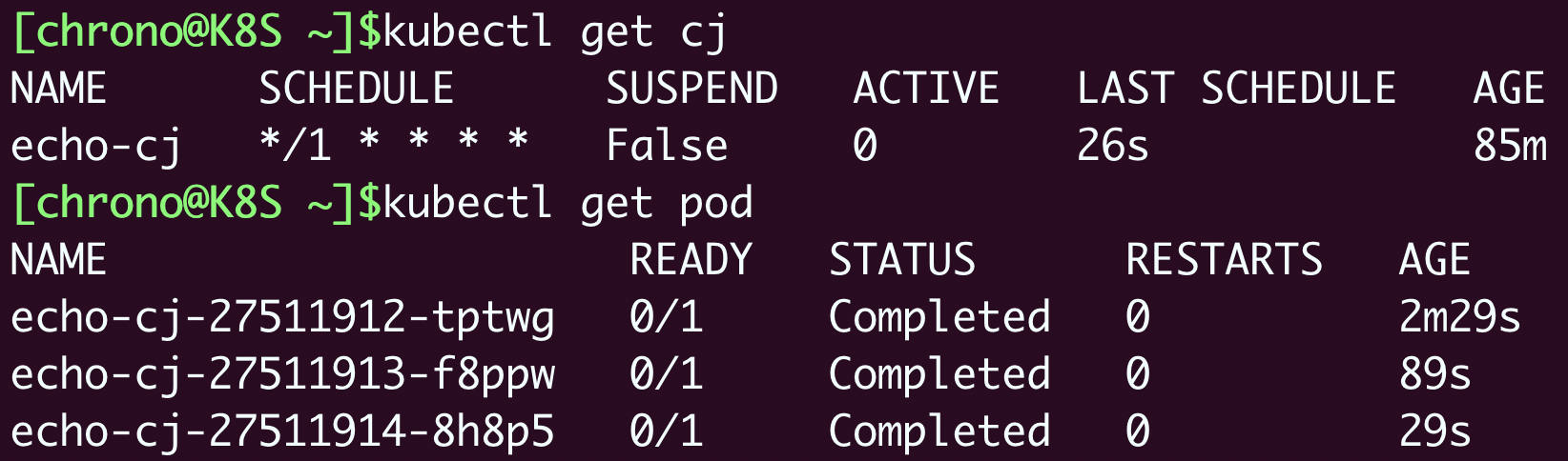 1 | kubectl apply -f cronjob.yml |