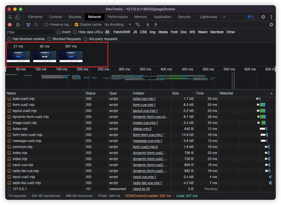 第四步,观察和等待浏览器的执行。我拿这节课的源码案例来演示一下最终效果,用SSR+CSR渲染了运营平台的首页: