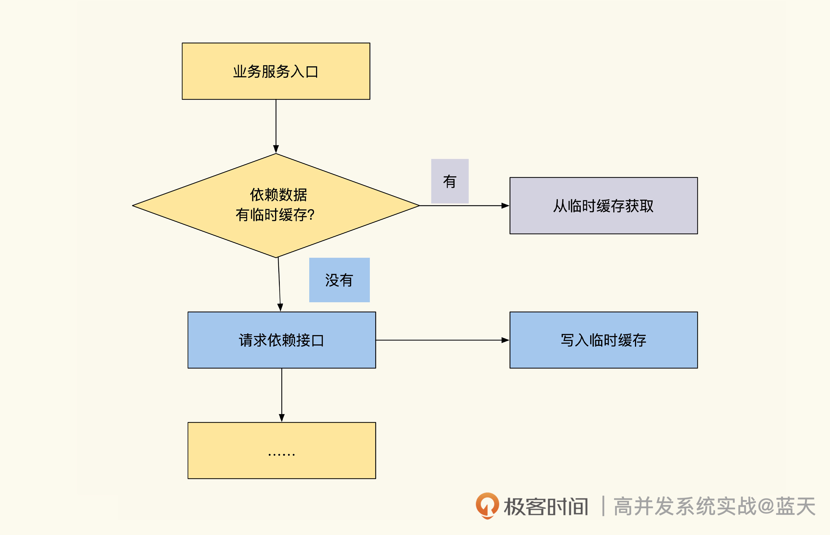 在通过临时缓存优化的服务做压测的时候,你会看到同参数的请求响应很快,甚至QPS也很高,但这不等同于服务的真实性能情况,系统不稳定的隐患仍然存在。为什么这么说呢?