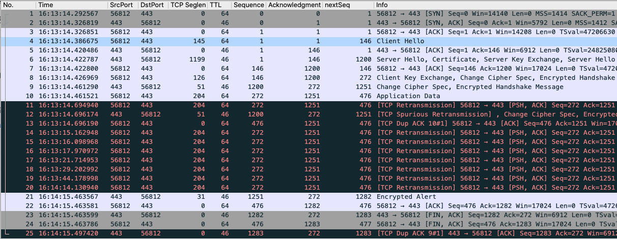 有一次,我们一个客户访问HTTPS站点的服务,时常报错失败,我们就做了抓包。这个问题的原因已经不重要了,但是这个抓包文件倒是很适合用来给我们学习TCP重传。