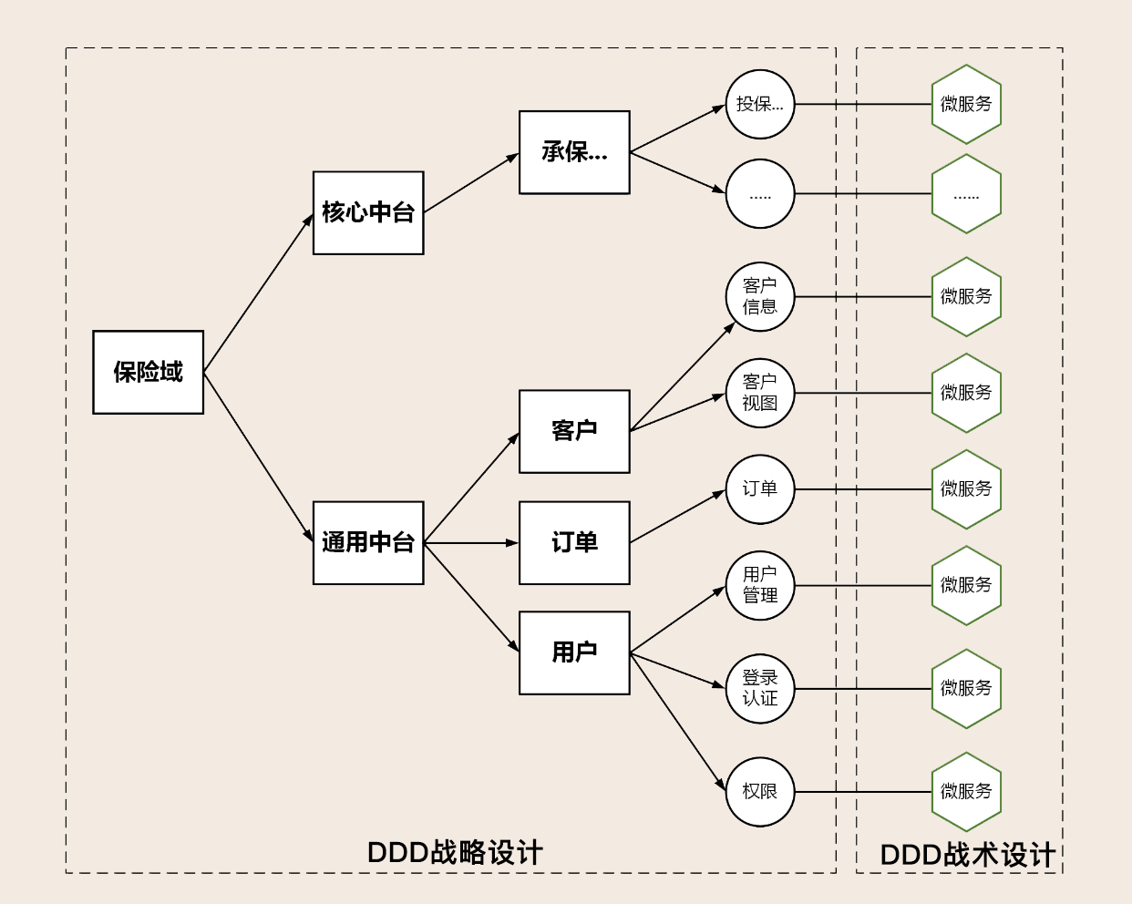 DDD的子域分为核心域、通用域和支撑域。划分这几个子域的主要目的是为了确定战略资源的投入,一般来说战略投入的重点是核心域,因此后面我们就可以暂时不严格区分支撑域和通用域了。