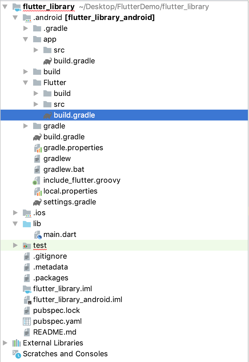 这里的Flutter模块,也是Flutter工程,我们用Android Studio打开它,其目录如下图所示: