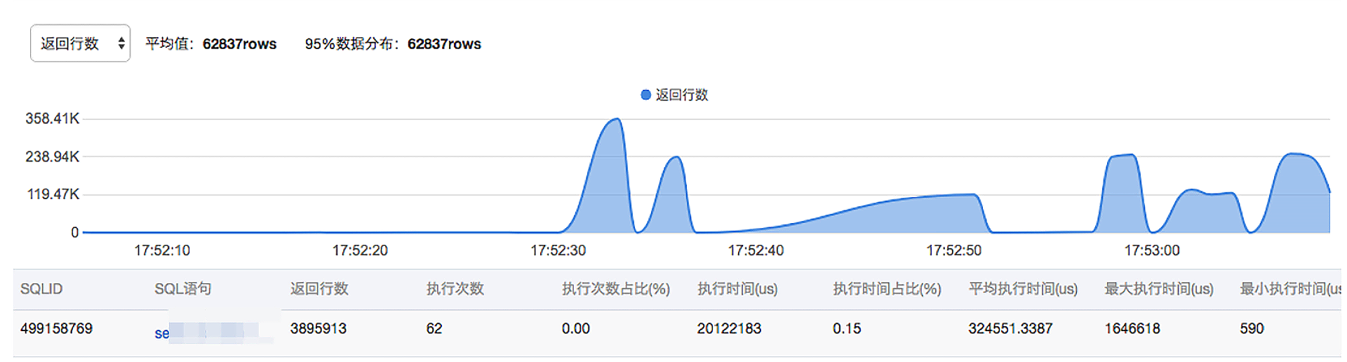 当然,在故障恢复之后,我们需要找到引起故障的真正原因,因为只有定位到了根本原因,你才能避免下一次出现同样的故障。针对这次故障中的实例,已经启用了RDS产品提供的SQL洞察和审计功能,我们使用这个功能对故障期间执行的SQL做了分析。我们分析了故障发生前,数据库中扫描行数、返回行数看起来比较高的一些SQL,并对这些SQL进行了一些优化。