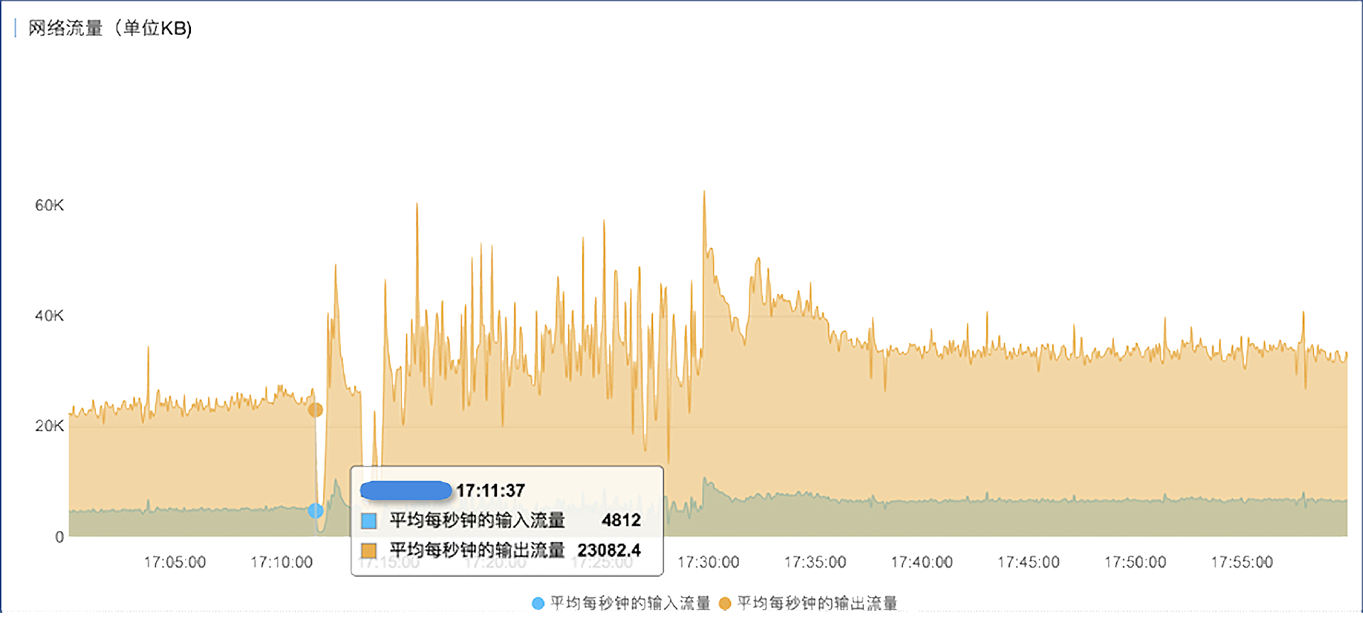 - 我们再来看数据库的网络流量趋势图,和CPU使用率、QPS等指标的变化趋势是完全一致的。