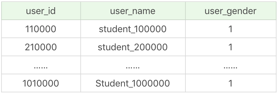 还是针对user_gender数据表,我们把user_id和user_name字段设置为联合主键,然后看下SQL查询效率有什么区别。