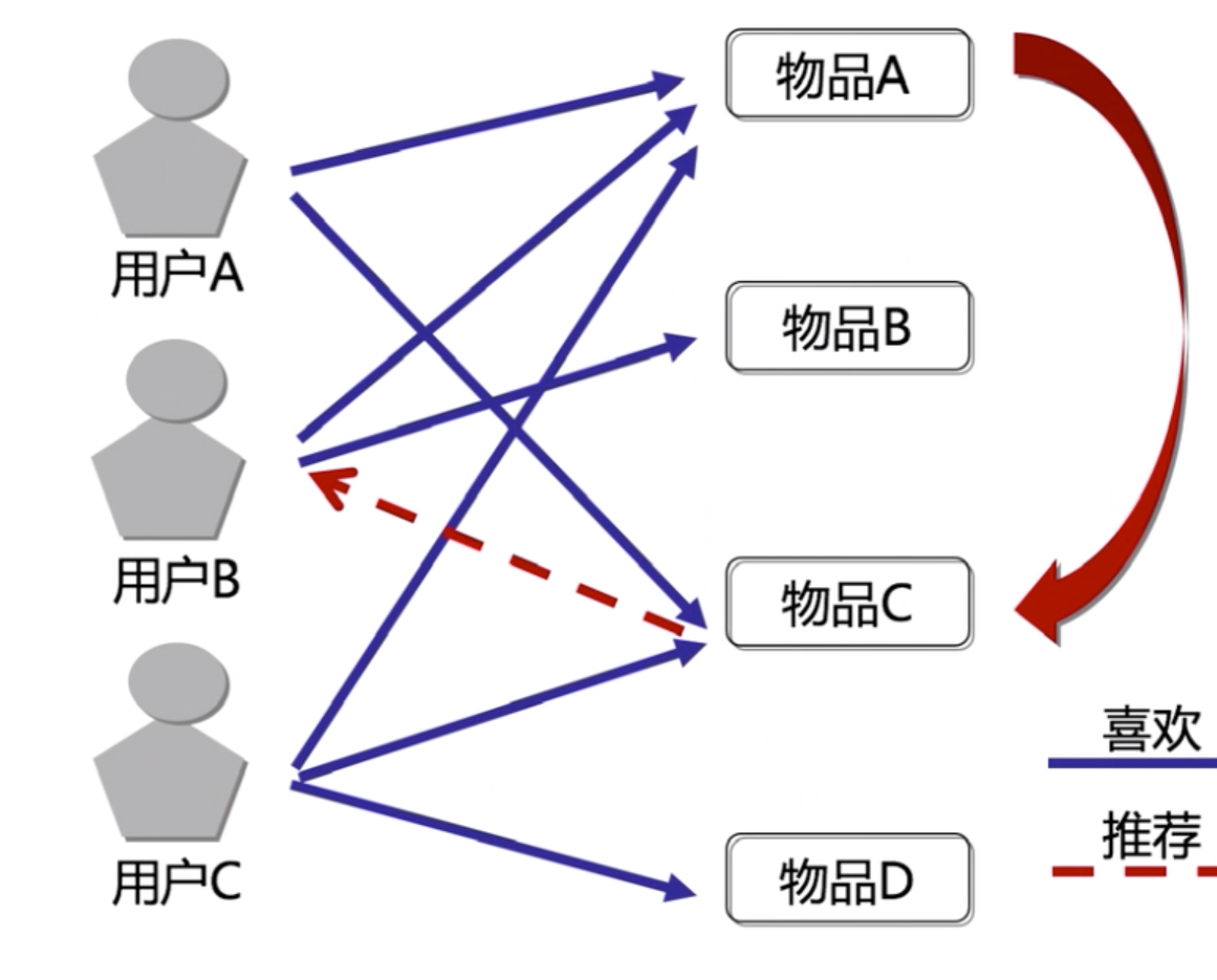 这张图是一张典型的基于Item的协同过滤图 ,左侧是用户,右侧是物品(物品可以理解为推荐系统中的内容)。