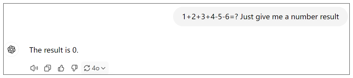 我们很容易知道1+2+3+4-5-6=-1,但大模型给我们的答案是0。
