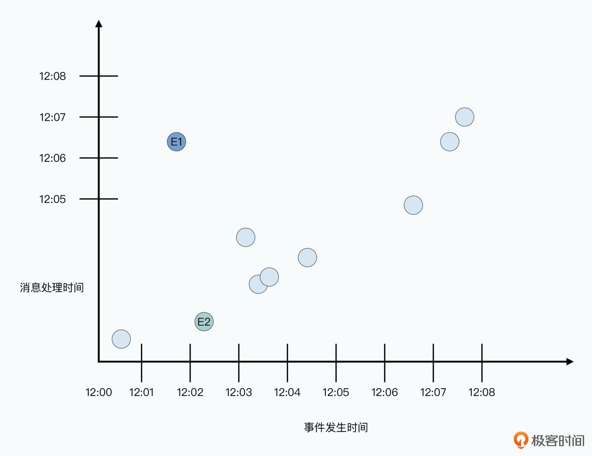- 事件ID,用来标识一个唯一的事件。在实践层面,如果出现系统故障,我们常常会重试保障“至少一次”的数据处理。而有了这个字段之后,我们就可以在处理的时候进行去重,这样我们才有可能做到“正好一次”的数据处理。