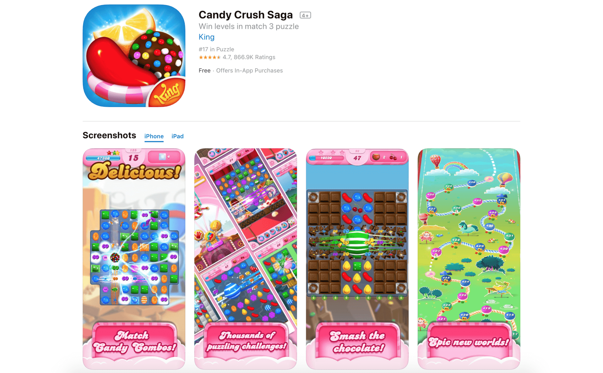 曾经有一段时间,在Facebook上有一款名为糖果传奇(Candy Crush Saga)的游戏风靡了整个北美。各个年龄层的玩家都会在空闲的时间拿出手机,过五关斩六将,希望尽快突破更多的关卡,并且获得高分。