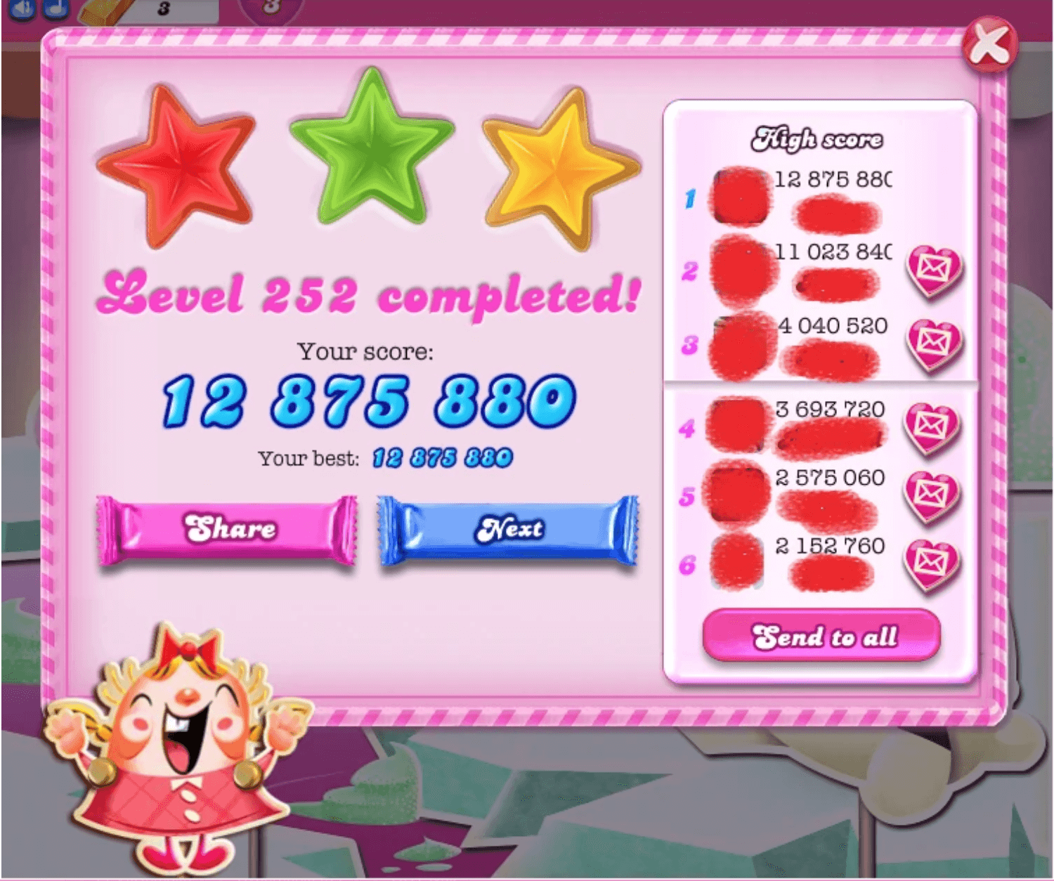 当然了,除了消除游戏本身带来的乐趣以外,可以在Facebook里和自己的好友进行积分排名比拼也是另外一个能吸引用户的地方。