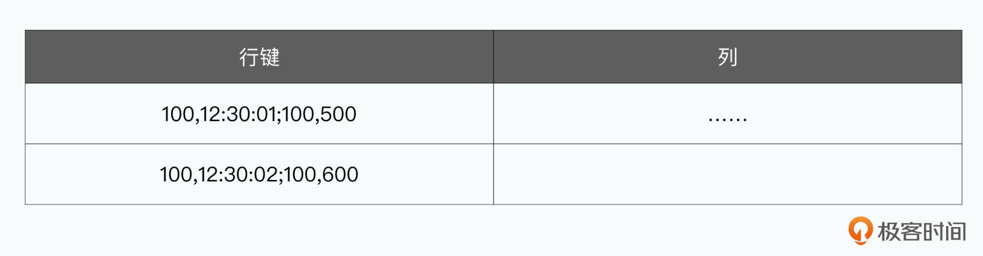 在前面的[第9讲]解读Bigtable这篇论文的时候,我们说过在Bigtable里,数据是按照行键分区的,实际的数据存储,也是按照行键连续存储的。并且,当我们用一个行键去Bigtable里面查询数据的话,Bigtable会有Block Cache,也就是把底层的SSTable的整个Block都获取回来。而这个里面,其实就会包含当前行键前后连续行键所包含的数据。