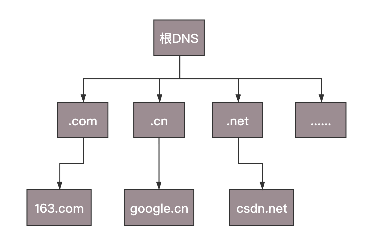 - 根DNS收到来自本地DNS的请求,发现后缀是 .com,说:“哦,www.163.com啊,这个域名是由.com区域管理,我给你它的顶级域名服务器的地址,你去问问它吧。”