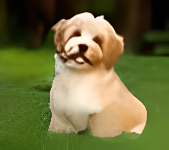 我们再来看一个超分辨率的例子。比如后面这张图,输入图像是一张64x64分辨率的小狗,使用Tile功能配合上“dog on grassland”这个prompt,可以轻松实现图像的8倍超分,得到512x512分辨率的效果。