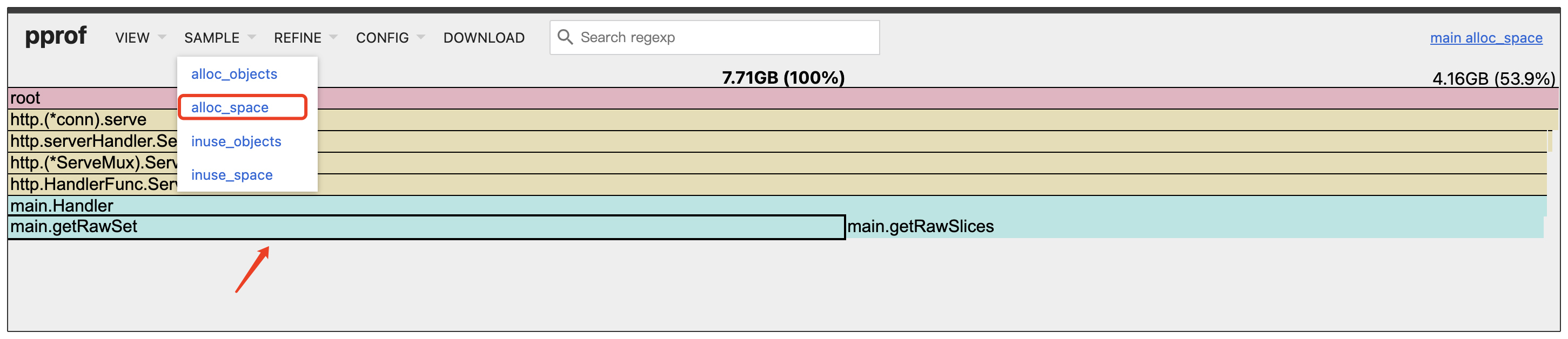 现在让我们再看一下内存火焰图,看看经过空结构体类型的优化后,我们的代码是否还有优化空间。