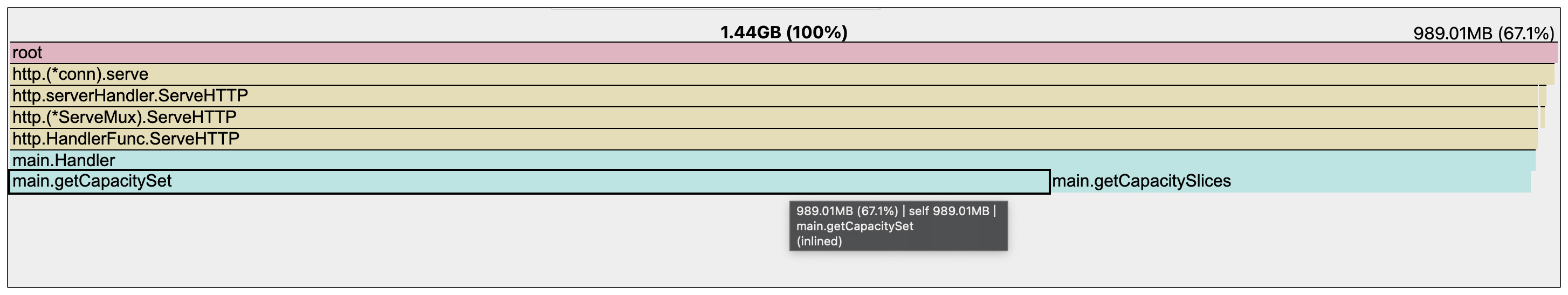 从火焰图上我们可以看出来,经过前面几次的优化,应用内部最耗时的函数就只剩下已经优化过之后的getCapacitySet和getCapacitySlices函数,没有进一步优化的空间了。