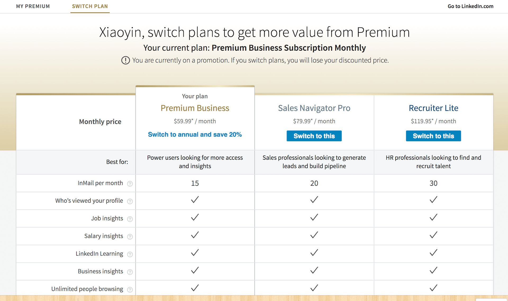 如果你认为,成为了会员,领英增长团队的工作就结束了,那我会觉得你这个产品经理还欠缺点儿火候。接下来,你可以看看领英是如何吸引已有会员升级的。