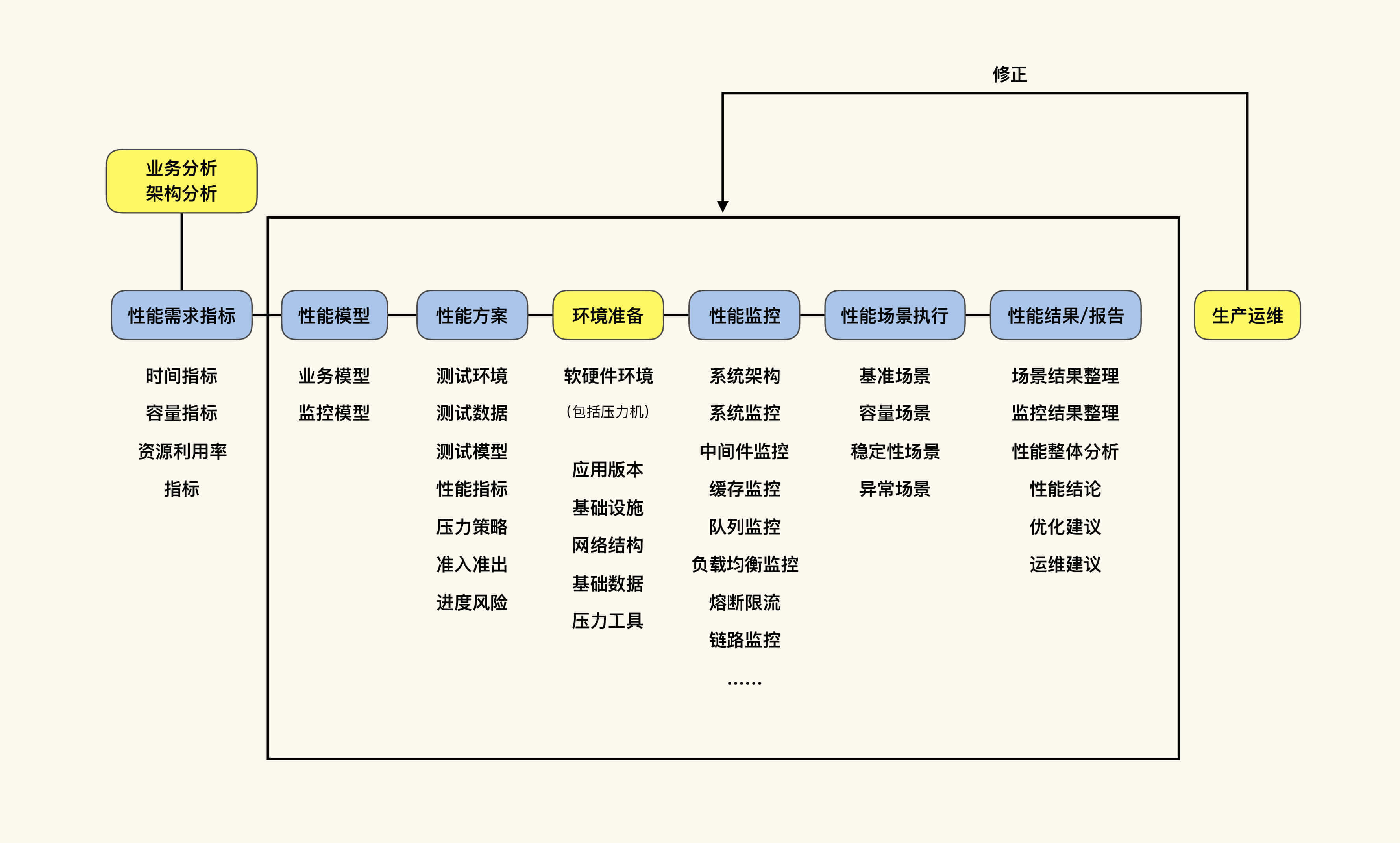 - 解决单接口基准场景中遇到的性能问题:也就是说,当我们在做单接口测试时,碰到了性能瓶颈一定要分析,这就涉及到了性能分析逻辑。所以,性能分析基本上可以分为两大阶段: