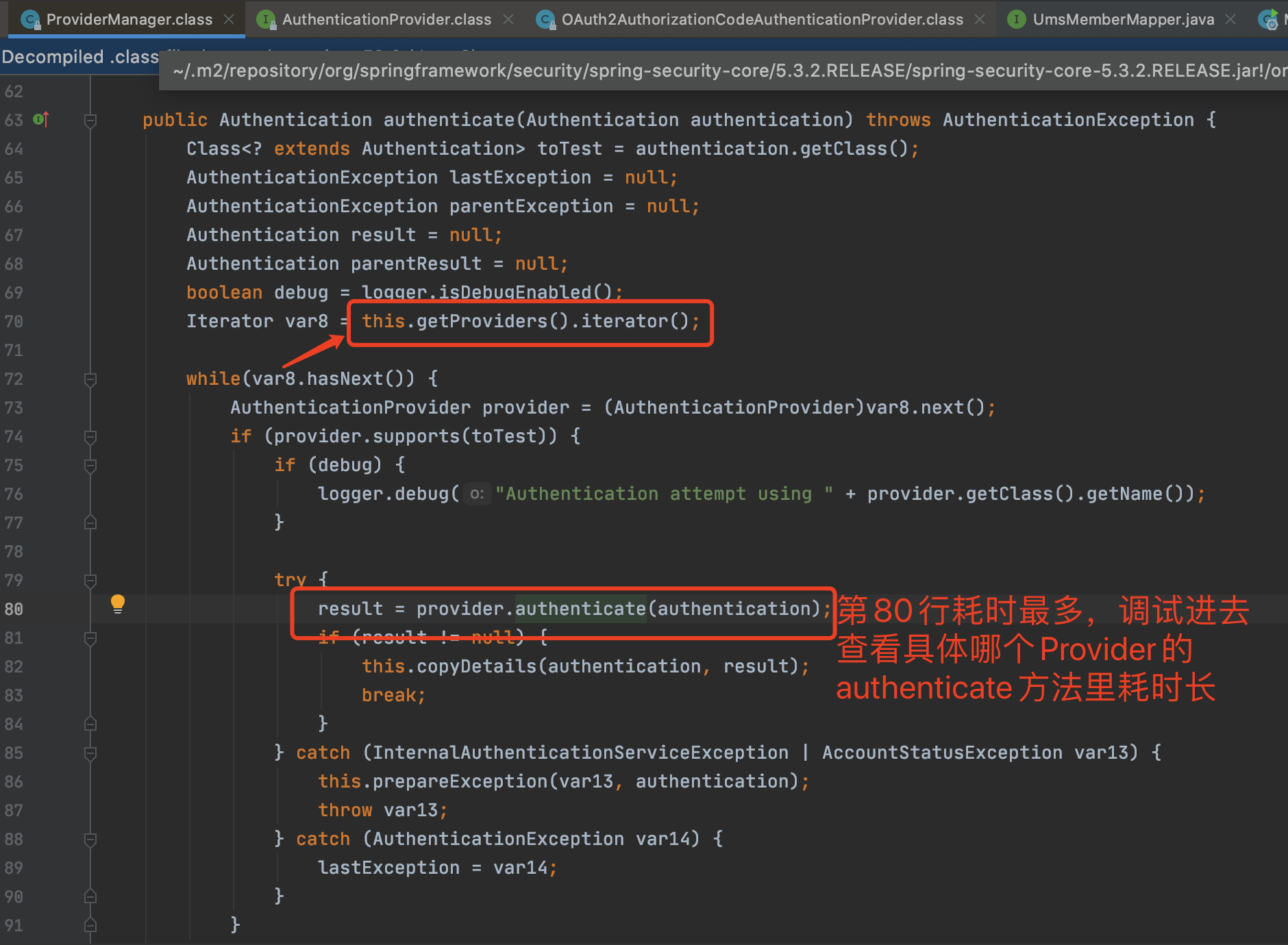 既然这个authenticate方法耗时比较长,那我们就打开源代码看看这一段是什么东西。