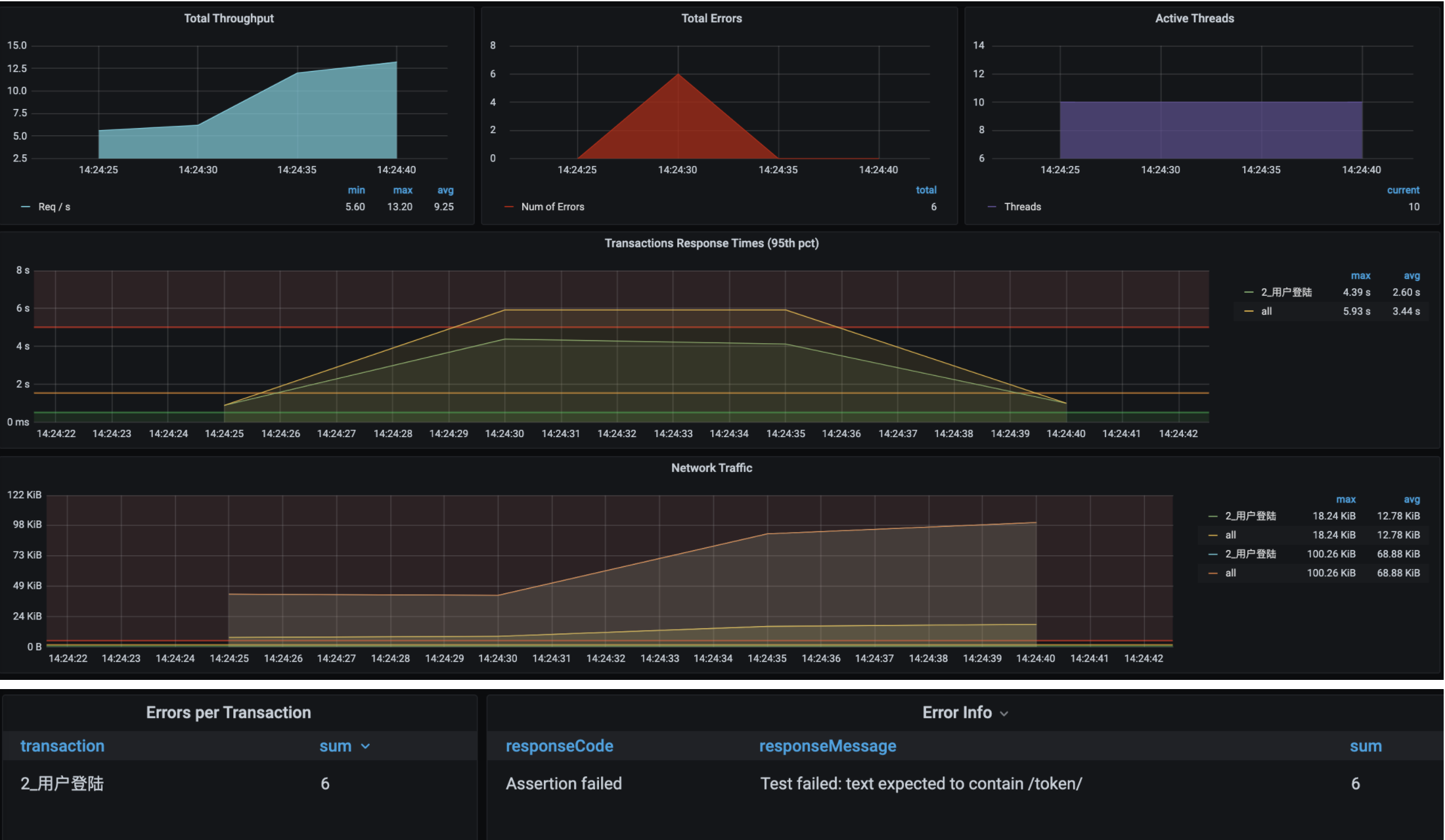 所以,我们要先做单接口的基准场景。那具体怎么做呢?我们来看一个例子。首先,我们拿几个用户测试一下登录接口的基本性能(请你注意,这个尝试的过程本身并不是基准场景)。如下所示: