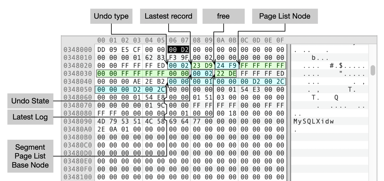 - Undo State为2(TRX_UNDO_CACHED),事务已完成,Undo段可重用。