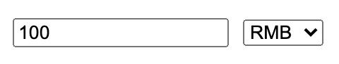 这个例子就是创建一个受控表单组件。比如,一个用于输入价格的表单组件,需要用户既能输入价格的数量,还能选择货币的种类,最终的效果类似下面这个图: