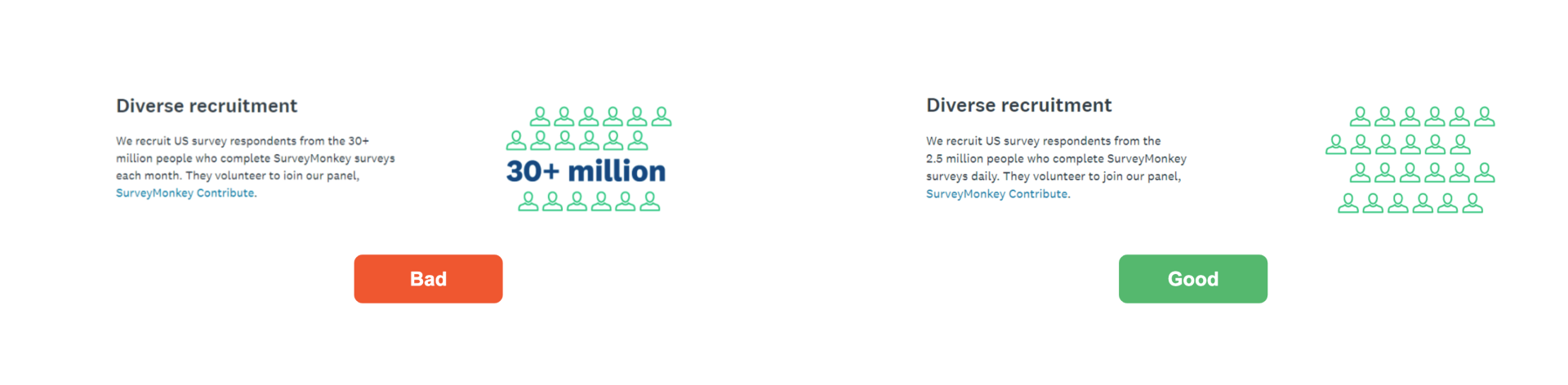 在一个多元化国家,不要都是白人图片,需要把其他人种也照顾到。下图中左半部分是正确例子,右边是错误的示例(右边进行了韩国的本地化,却没有见到韩国人面孔)。