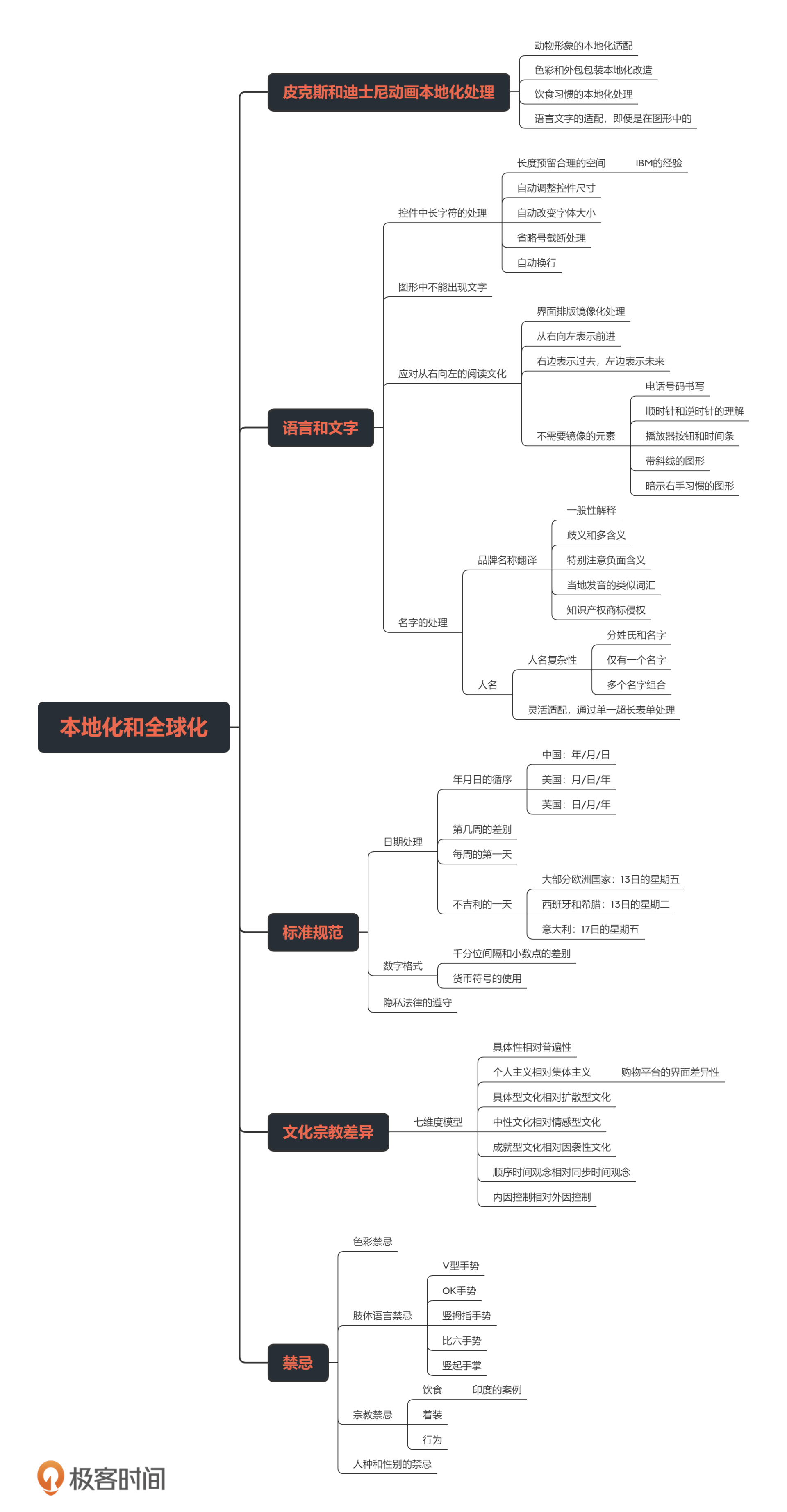 我还给你总结了一个脑图,你可以长按保存下来,对在设计中如何做好本地化和全球化会很有帮助。