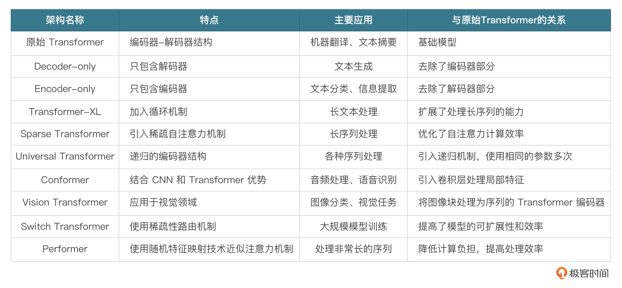 选择模型架构 Transformer架构自从被提出以来,已经演化出多种变体,用来适应不同的任务和性能需求。以下是一些常见的Transformer架构方式,包括原始的设计以及后续的一些创新。