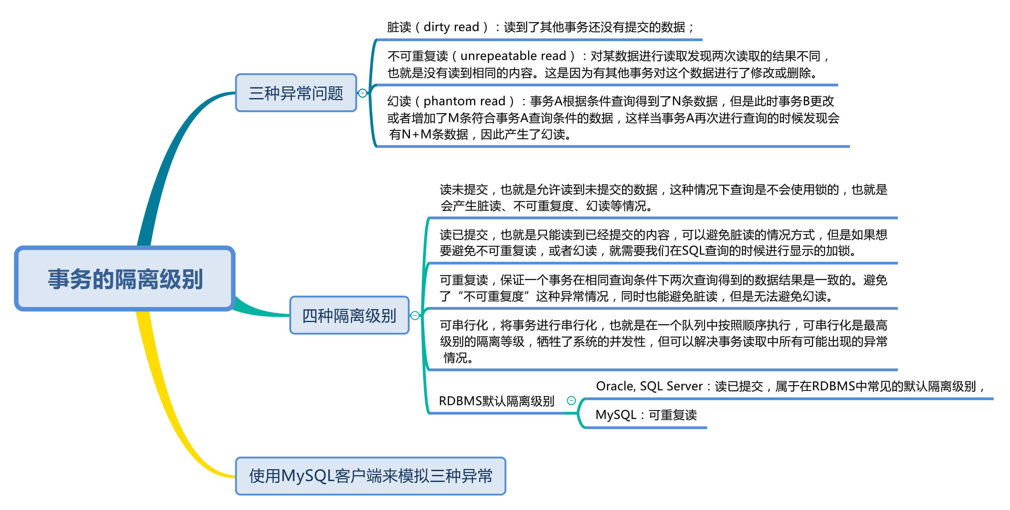 我们今天主要讲解事务的异常以及隔离级别都有哪些,如果你已经对它们有所了解,可以跳过本次章节,当然你也可以通过今天的课程快速复习一遍: