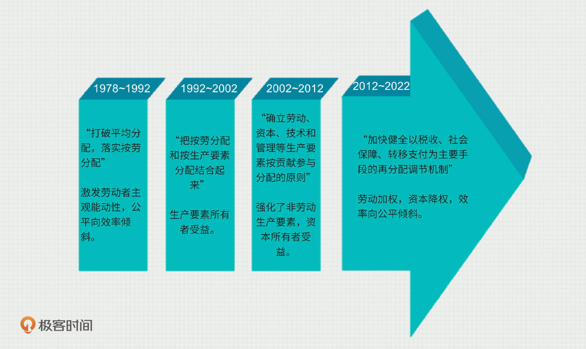 - 先是高速增长期,让一部人先富,效率优先,做大蛋糕;