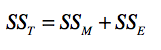 在这个公式中, $Y_{ij}$如前所说,表示了第$i$天第$j$种算法所导致的转化率。而$\overline{\overline Y}$表示了10天里,2种算法全部20个数据的平均值。SSM表示数据分布所引起的方差,我们称它为模型平方和(Sum Of Squares for Model),它的计算公式如下: