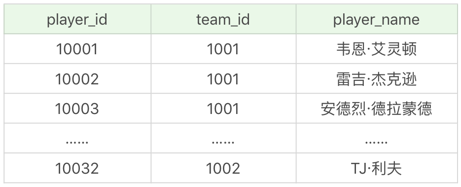 单说概念有点抽象,我们用数据表举例说明一下。这里我创建了NBA球员数据库,SQL文件你可以从GitHub上下载。