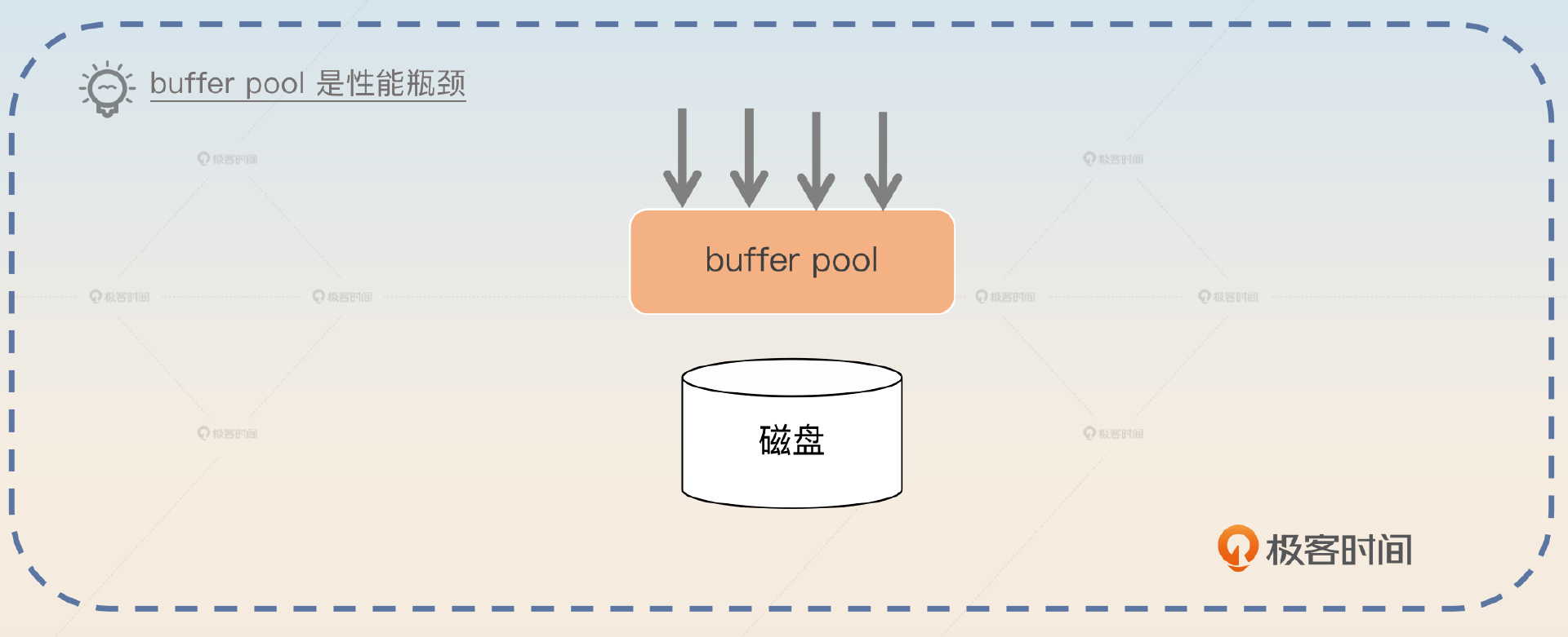 这里你还可以进一步说明另外一个相关的参数 innodb_buffer_pool_instances。从图里你可以看到,要是整个 MySQL InnoDB 引擎内部只有一个缓冲池,所有查询都访问它,那么并发竞争会十分厉害。