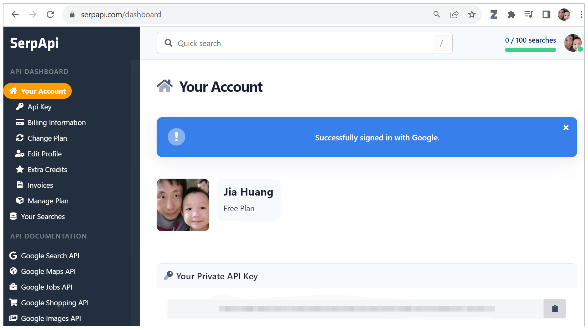 在开始之前,有一个准备工作,就是你需要在 serpapi.com 注册一个账号,并且拿到你的 SERPAPI_API_KEY,这个就是我们要为大模型提供的 Google 搜索工具。