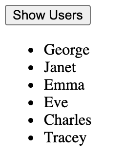 当点击 Show Users 按钮时,会显示 Loading 的文本,并将 button 设为 disabled。请求成功后,则显示获取的用户列表。如果请求失败,则显示一段错误信息的文本。