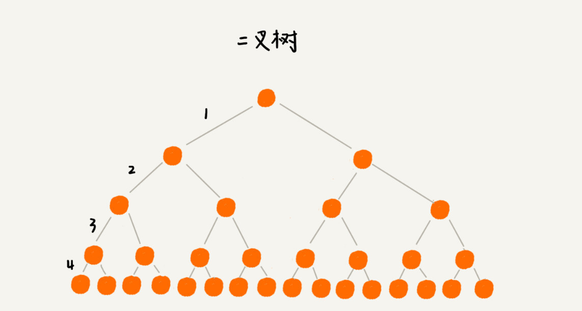 我们来看下,如果我们把索引构建成m叉树,高度是不是比二叉树要小呢?如图所示,给16个数据构建二叉树索引,树的高度是4,查找一个数据,就需要4个磁盘IO操作(如果根节点存储在内存中,其他节点存储在磁盘中),如果对16个数据构建五叉树索引,那高度只有2,查找一个数据,对应只需要2次磁盘操作。如果m叉树中的m是100,那对一亿个数据构建索引,树的高度也只是3,最多只要3次磁盘IO就能获取到数据。磁盘IO变少了,查找数据的效率也就提高了。