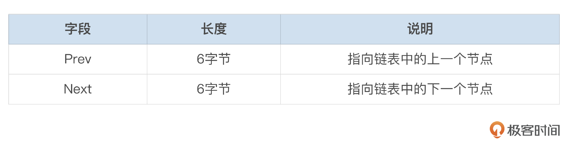 InnoDB的数据文件中存在大量双向链表结构,这些链表结构上是一样的,都由链表基节点和链表节点组成。链表基节占用16字节,由下面这3个字段组成。