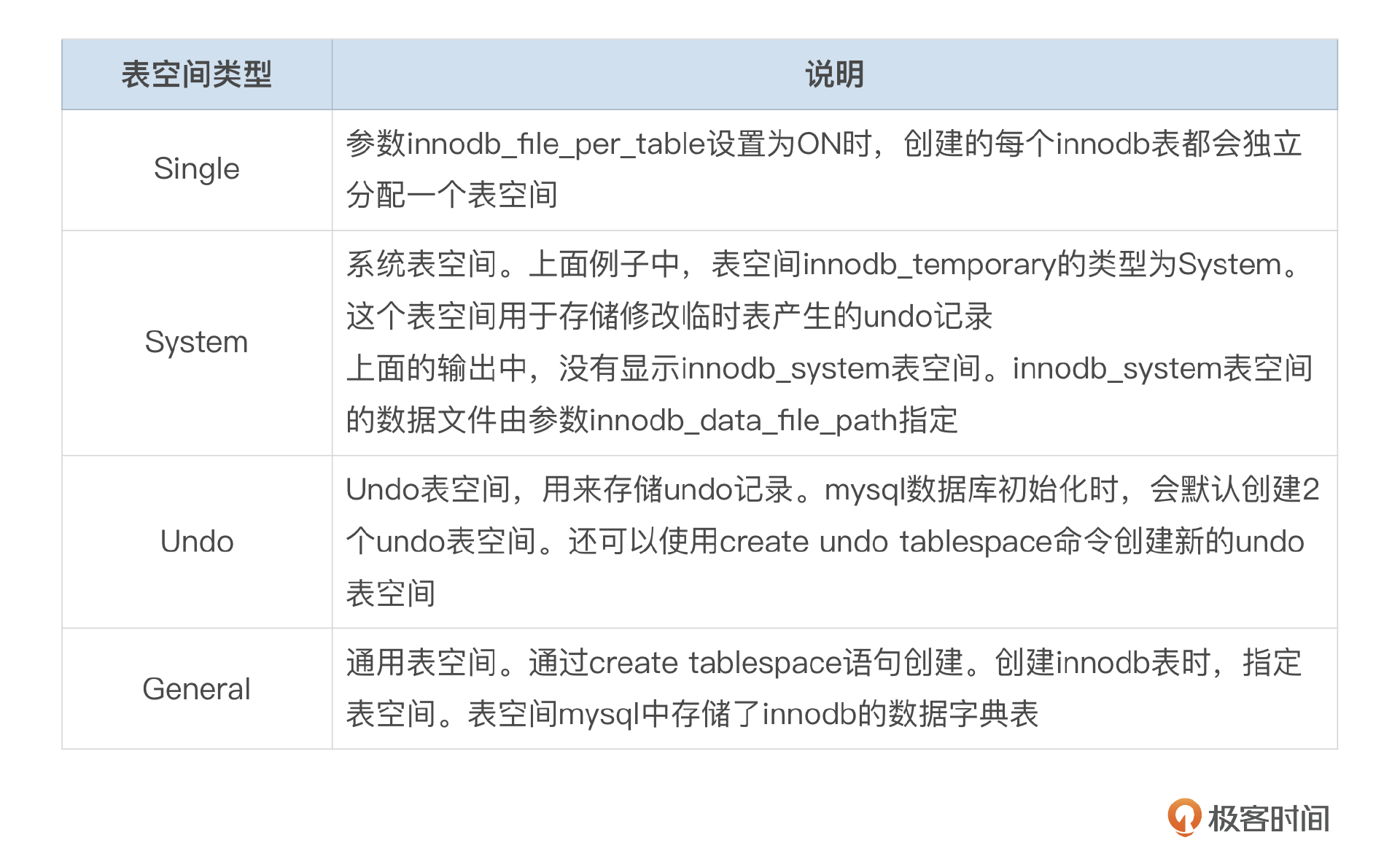 表空间分为几种不同的类型,我整理成了下面这个表格。