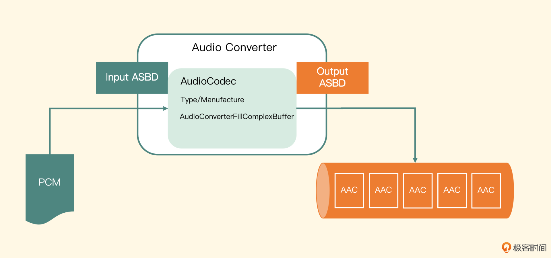 iOS平台在多媒体方面提供的API是非常强大的,并且兼容性也非常好。随着学习的深入,你会逐渐了解更多更好用的API,而这节课,我们利用的就是它所提供的编码服务,将PCM数据编码为AAC格式的数据。