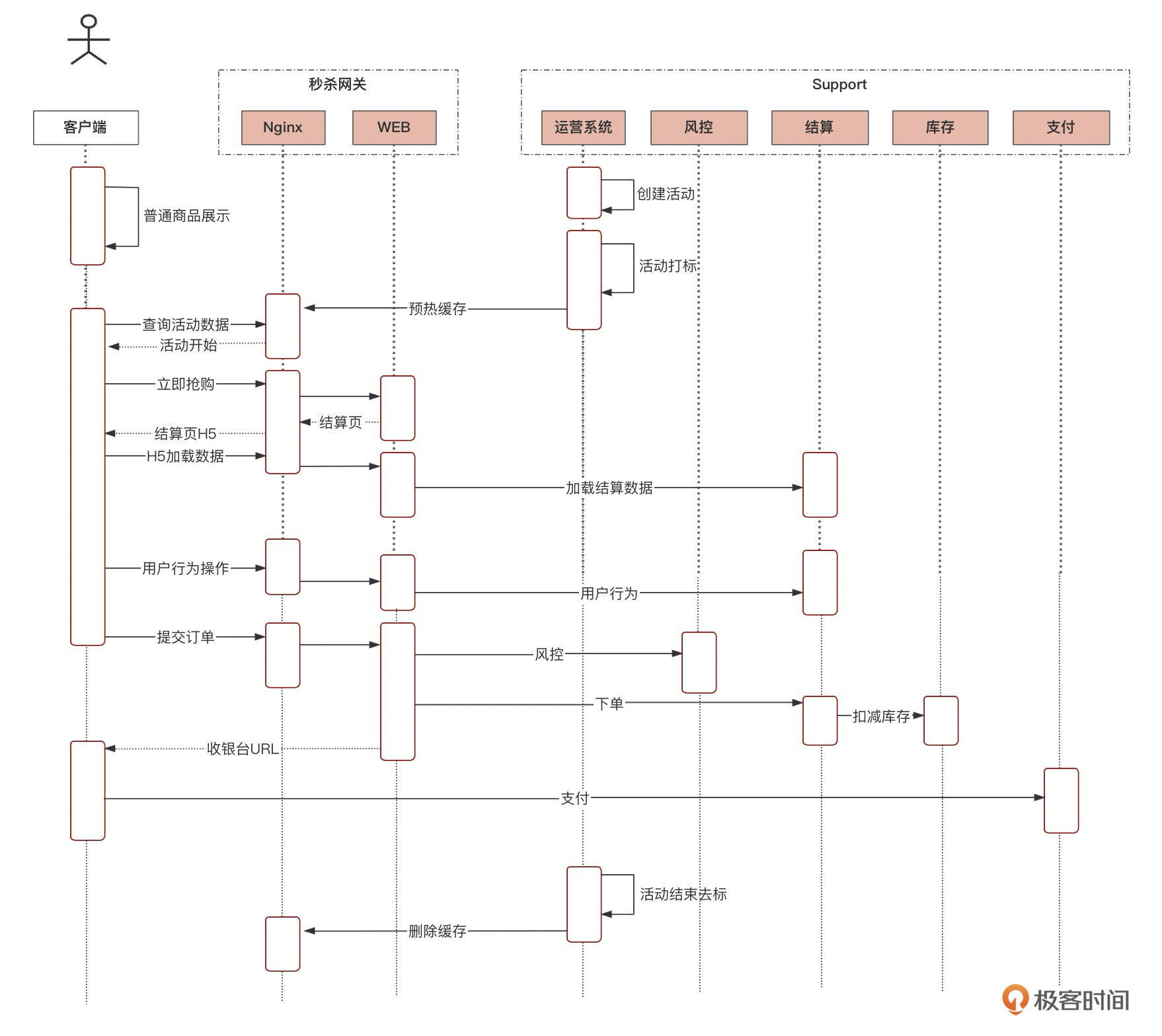 这样一来,秒杀业务从开始到用户抢购,到最后的活动结束关闭,整个流程就形成闭环了。当然上面列举的也只是主要的流程,实际业务可以在不同节点依据实际需求添加不同的业务功能,这个你可以灵活调整。