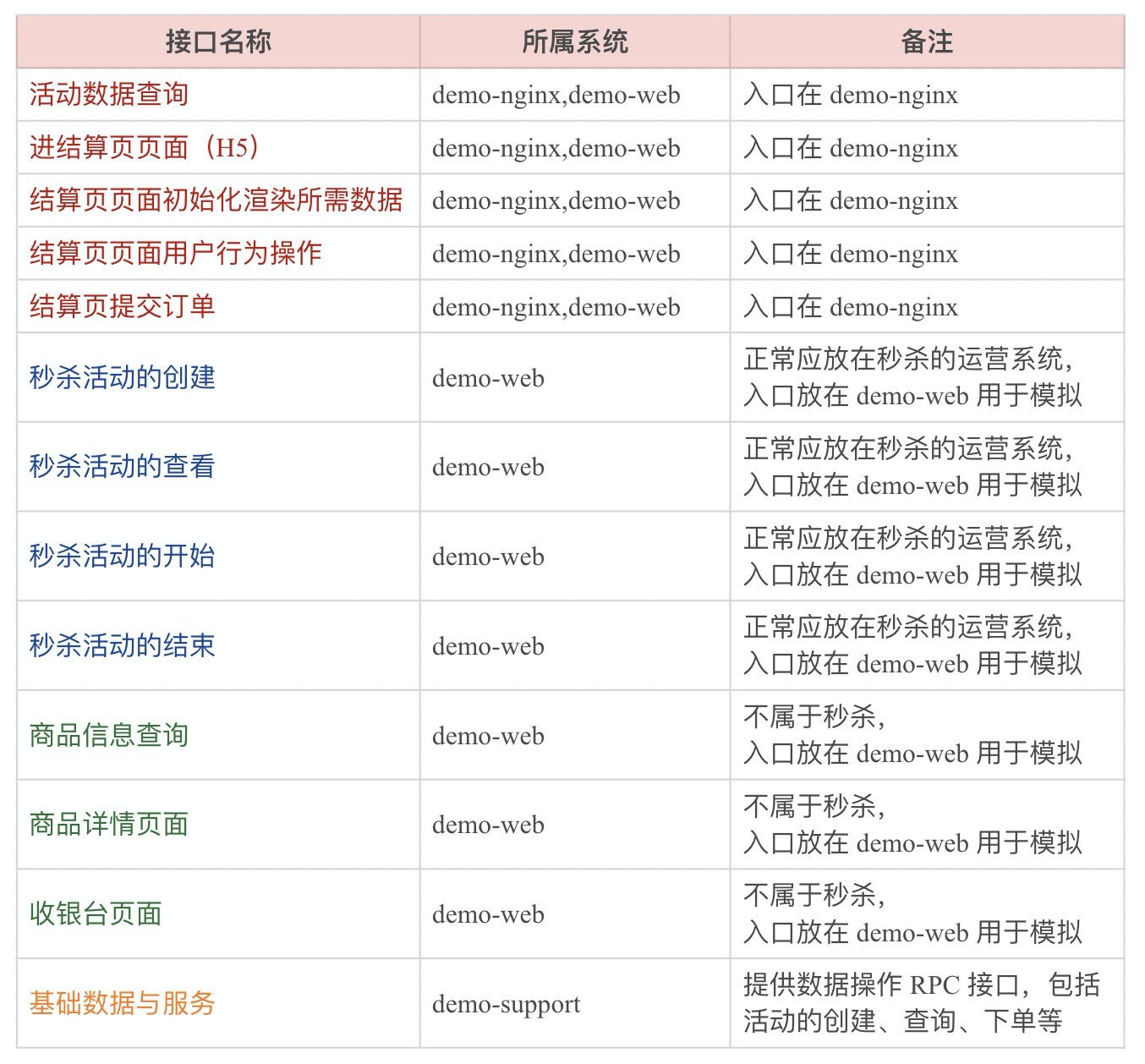 从上面的时序图中,我们可以非常清楚地归纳出秒杀系统需要提供的主要接口: